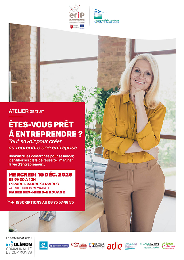 Informations et inscription au 06 75 57 46 55 ou sur https://www.weezevent.com/reunion-etes-vous-pret-a-entreprendre-marennes