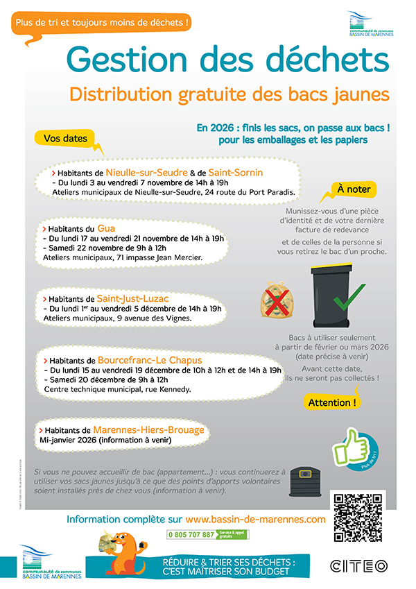 Attention : les bacs devront être utilisés seulement à partir de février ou mars 2026 (date précise à venir). Avant cette date, ils ne seront pas collectés !