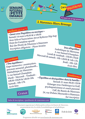 Un évènement gratuit organisé par le Relais petite enfance du Bassin de Marennes en partenariat avec la crèche, la médiathèque et la ludothèque.